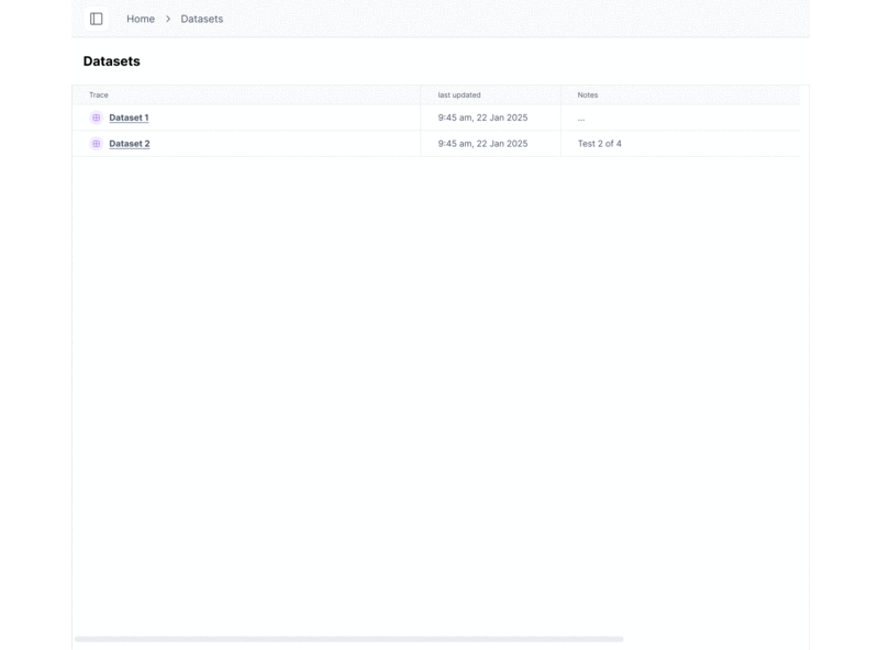 This gives you multiple test cases instead of evaluating one example at a time. Learn more about datasets and experiments.